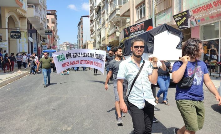 Hızla betonlaşan ilçe merkezindeki yeşil alanların artırılmasını isteyen Nefes Almak İstiyorum İnisiyatifi, kent merkezinin betonlaşmasına tabutlu tepki gösterdi.