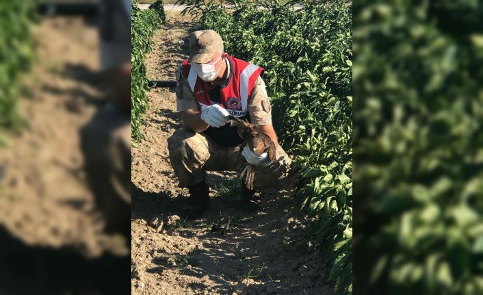 Hatay’ın Altınözü ilçesinde tarım arazisi içerisinde bulunan yaralı şahin tedavi altına alındı.