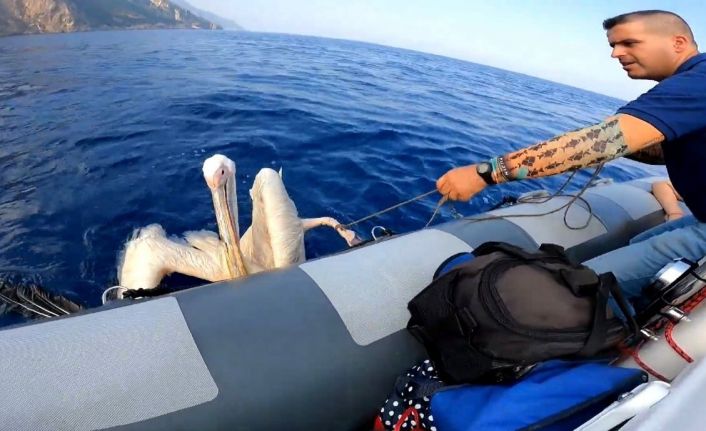 Hatay’ın Samandağ ilçesinde denizde botla gezen aile tarafından bulunan yaralı pelikan, kurtarılarak tedavi altına alındı.