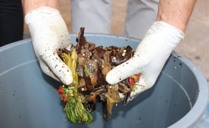 Hatay’da israfın önüne geçebilmek için uygulanan ‘mutfakta sıfır atık’ projesi kapsamında daha önce çöp olan evsel atıklar, artık kompost haline getirilerek, gübre oluyor. Patlıcan, soğan, domates atıkları, yumurta kabuğu, kullanılmış peçete, karton bardaklar kompost haline getirilerek toprakta gübre olarak kullanılıyor.