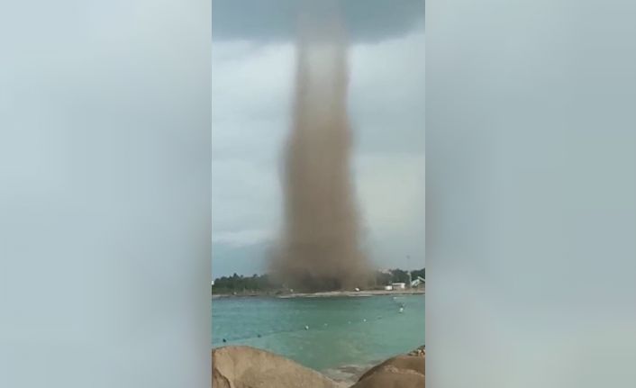 Sabah saatlerinde kıyıya yakın yerde oluşan hortum yaklaşık 15 dakika sürdü. Kıyıda kum ve denizden su çeken hortum cep telefonu kamerasıyla görüntülendi.