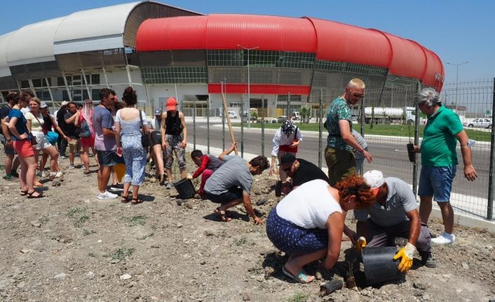 Konser vermek üzere 5 farklı ülkeden Hatay’a gelen 45 müzisyen, Hatay Stadyumu çevresinde fidan dikti.