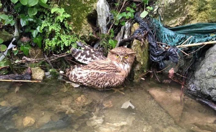 Hatay’da, avcılar tarafından vurulduktan sonra yaralı olarak bulunan balık baykuşu kurtarılamadı.