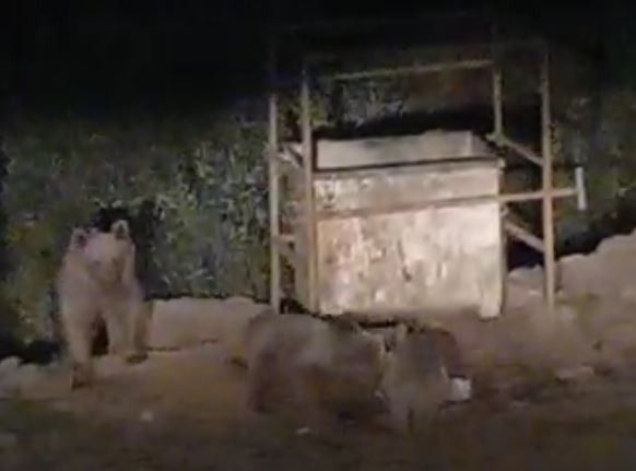 Tunceli’nin Pülümür ilçe merkezinde bulunan mezbahane, yaban hayvanların her akşam karınlarını doyurdukları mekan haline geldi. Mezbahanenin konteynerini bu kez anne ve 3 yavru boz ayı ziyaret etti. Annelerinin konteyneri karıştırarak çıkardığı hayvan iç organlarıyla karınlarını doyuran yavrular daha sonra anneleriyle birlikte bölgeden uzaklaştı. Ayıların ardından bir tilki de mezbahaneye uğrayarak karnını doyurdu. Ayılar ile tilkinin karınlarını doyurmaları vatandaşlar tarafından cep telefonu kamerasıyla kaydedildi.
