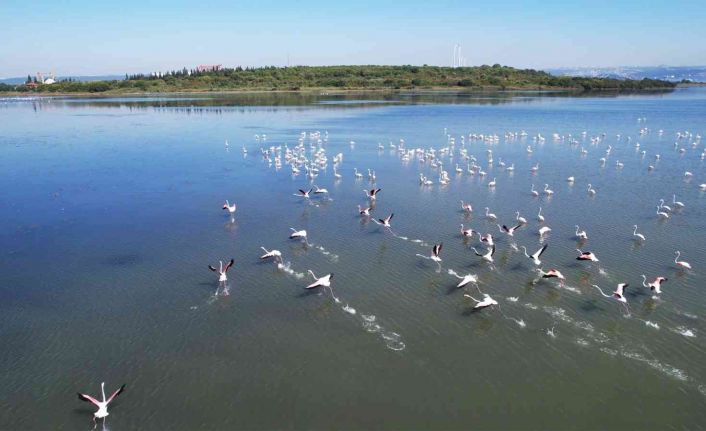 Hersek Lagünü’nde flamingoların görsel şöleni başladı