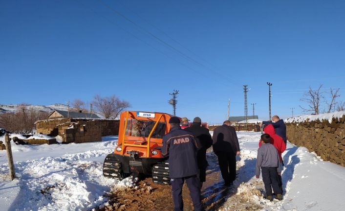 Köyden yaklaşık 10 kilometre uzakta bulunan mevkide kar ve soğuktan dolayı mahsur kalan köylülerin imdadına AFAD yetişti.