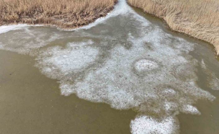 Iğdır’da donan Karasu Sazlığı’nda buzlar eriyor