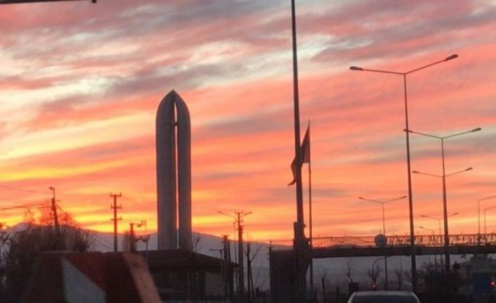 Iğdır’da akşam saatlerinde görsel şölen oluştu. Iğdır Melekli kasabasından merkeze giden vatandaşlar görsel şölen ile karşılaştı. Güneşin doğuşuna denk gelen vatandaşlar ortaya çıkan görsel şöleni de fotoğraf çekerek ölümsüzleştirdi. Ermeniler Tarafından Katledilen Şehit Türkler Anıt ve Müzesindeki kılıç anıtı ve Türk bayrağı da görsel şölene başka bir güzellik kattı.