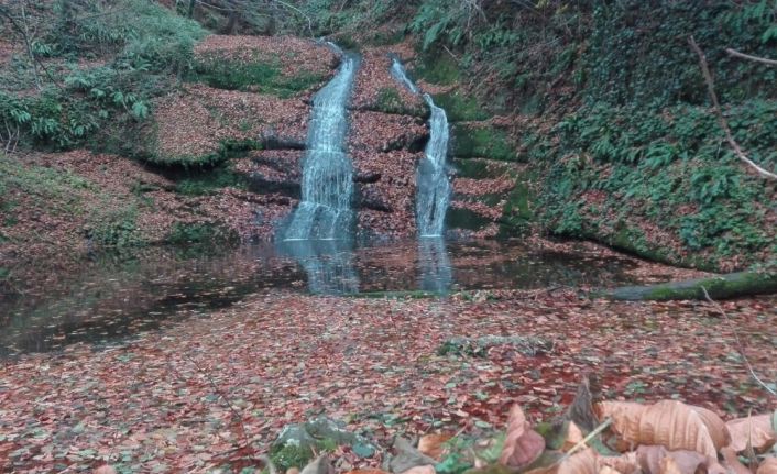 Ordu’nun Kumru ilçesinde bulunan ve az sayıda kişi tarafından bilinen ‘ikiz şelaleler’, yaprak dökümüyle birlikte kartpostallık görüntüler sunuyor.