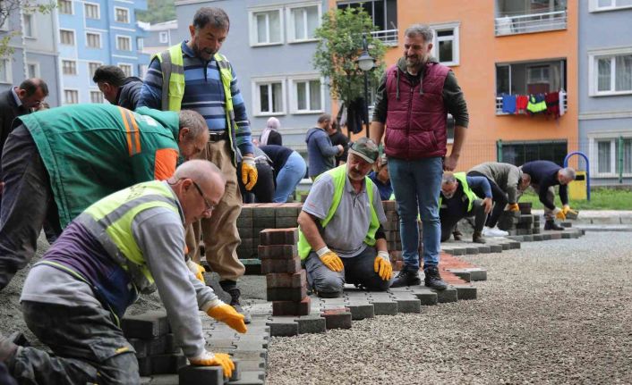 Artvin’in Borçka ilçesinde imece usulü ile ilçe halkı horon eşliğinde caddelere parke taşı döşedi.