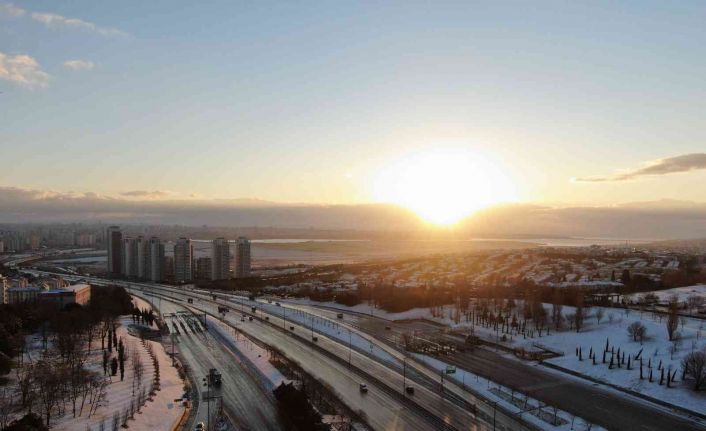 İstanbul’da kuşlar ve bulutlar eşliğindeki gün doğumuyla birlikte kar manzarası görsel bir şölene dönüştü. Kar yağışı ile binaların çatısı beyaza bürünürken, kentin semalarında güneşin yüzünü gösterdiği anlar kameralara yansıdı.