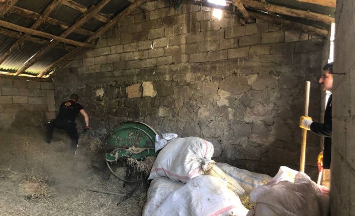 Erzincan’da itfaiye ekibi, samanlar arasına girdiği görülen 3 metre uzunluğundaki yılanı aradı.