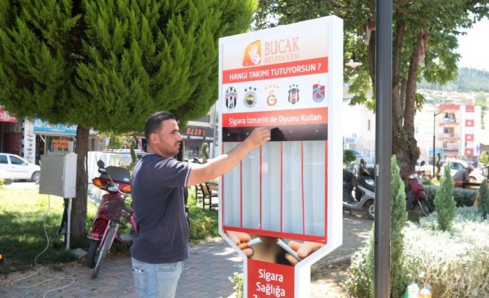 Bucak Belediyesi Kültür ve Sosyal İşler Müdürlüğü tarafından, çevreye rastgele sigara izmaritini atılmasını önlemek amacıyla, “Hangi Takımı Tutuyorsun?” gibi soruların sorulduğu ve cevap bölümlerinde sigara izmariti atma alanları bulunan kutular hazırlandı. İlk etapta hazırlanan kutular vatandaşların yoğun olarak bulunduğu cadde ve sokaklara yerleştirildi.