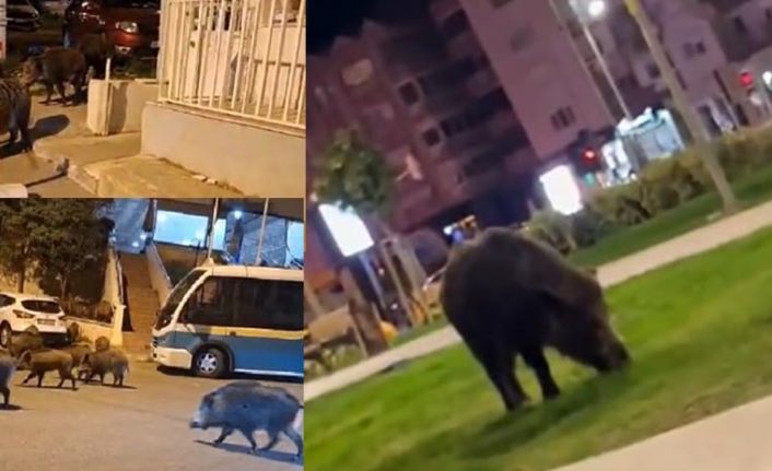 İzmir’in Balçova, Narlıdere ve Bornova ilçelerinde sürü halinde yerleşim yerlerine inen yaban domuzları, dev cüsseleriyle cadde ve sokaklarda cirit atarak korku salıyor. Geceleri sokağa çıkmaya korkan vatandaşlar yetkilileri kalıcı önlem almaya çağırırken, bazı kişilerin ise alıştıkları domuzlardan kaçmak yerine onları cep telefonlarıyla görüntülemesi dikkat çekti.