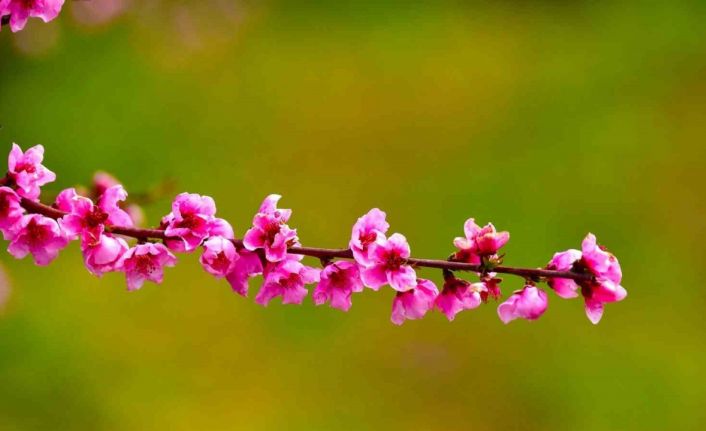 Bursa’nın İznik ilçesinde ilkbaharın gelişiyle birlikte meyve bahçeleri adeta renk cümbüşüne dönüştü. Özellikle şeftali ağaçlarının açan pembe-beyaz çiçekleri, doğaseverlere görsel bir şölen sunarken bölgeyi ziyaret edenleri kendine hayran bırakıyor.