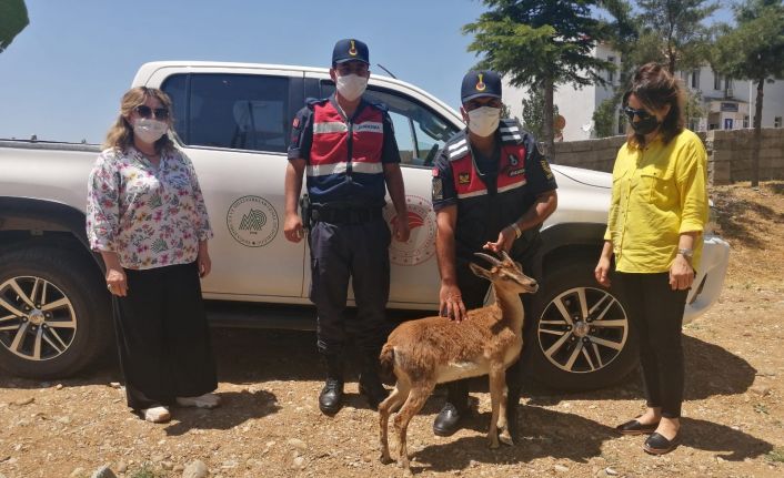 Kahramanmaraş’ta jandarma, bitkin halde bulunan dağ keçisine yardım eli uzattı.