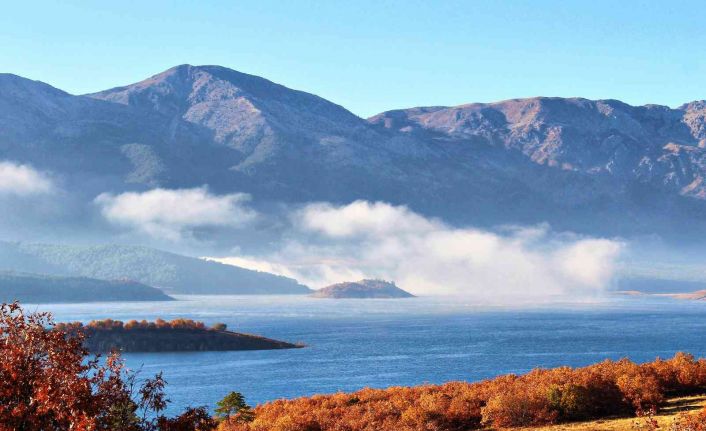 Kahramanmaraş’ta su sporları ve kış turizmi için elverişli olan bozulmamış doğasıyla dikkat çeken Adatepe Barajı sise bürününce kartpostallık görüntüler oluşturdu.