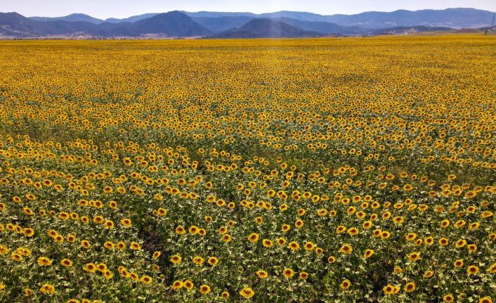 Kahramanmaraş’ta sarı renkte açan ayçiçeği tarlaları görsel şölen oluşurdu.