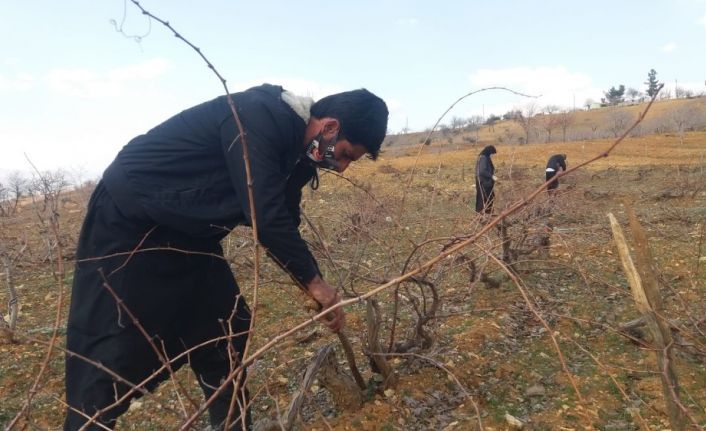 Kahramanmaraş’ta çiftçiler cemrenin düşmesiyle üzüm bağlarında budama işi için yoğun bir çalışma temposunun içine girdi.