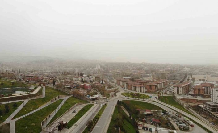 Kahramanmaraş’ta sabah saatlerinde etkili olan sağanak yağmur yerini toz bulutlarına bıraktı. Sahra çölünden rüzgarlarla taşınan toz partikülleri nedeniyle şehir genelinde hava kalitesi düşerken, oluşan puslu hava dron kamerası ile görüntülendi. Kentte etkili olan toz bulutu nedeniyle araçların üzerinin ince bir toz tabakasıyla kaplandığı gözlenirken, gökyüzünde sarımsı ve puslu bir görüntü oluştu. Dron ile kaydedilen görüntülerde, kentin üzerini kaplayan toz bulutu ve görüş mesafesindeki düşüş net şekilde görüldü.