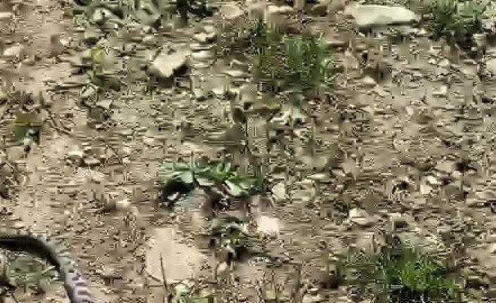 Karabük’ün Safranbolu ilçesinde kamp yapan iki arkadaş, nesli tehlikeye yakın kategoride bulunan Kafkas burunlu engereği doğal ortamında görüntüledi.