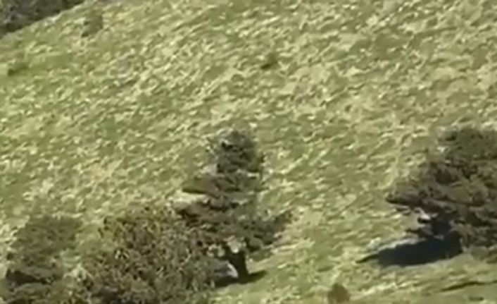 Tokat’ta kangal köpeğinin sürünün yanına kadar gelen ayıyı uzaklaştırdığı anlar cep telefonu kamerasına yansıdı.