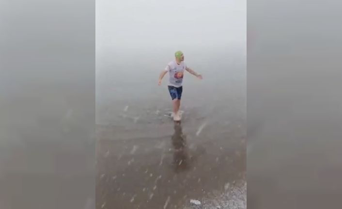 Geçen kış da denize girerek yüzdüğünü söyleyen Gürel, 2026 yüzme sezonunu kar altında açtığını ifade etti.