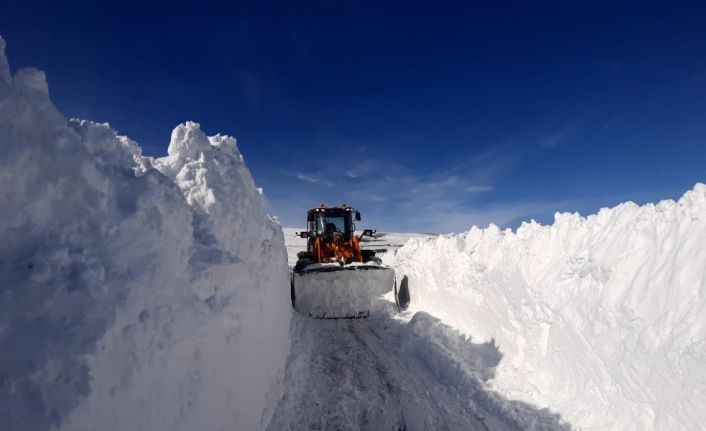Van’ın Çaldıran ilçesinde kar kalınlığının yaklaşık 5 metreyi bulduğu bölgede yol açma çalışmaları devam ediyor.