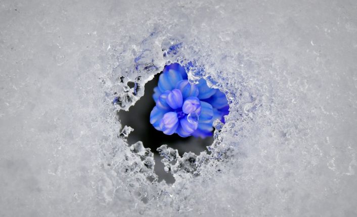 Kar ve çiçeklerin buluşması hayran bıraktı