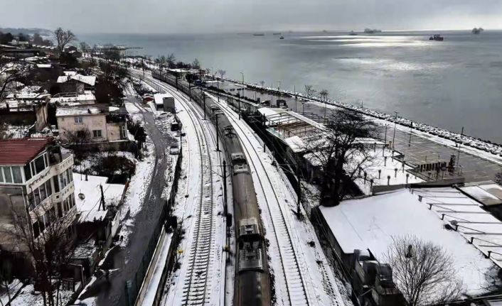 Mega kentte etkili olan kar yağışı sonrası Küçükçekmece Menekşe sahilinde oluşan beyaz örtü havadan görüntülendi. Gebze-Halkalı seferini yapan Marmaray’ın geçtiği güzergahında karla kaplı görüntüsü ise adeta mest etti.