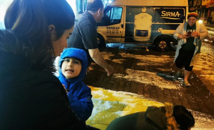 Kar yağışının on yılda bir gerçekleştiği Marmaris’te gece yarısı yağan doluyu kar zanneden vatandaşlar beyaz örtüyü görünce sokağa döküldü. Birçok kişi kalınlığı yaklaşık 10 santimetreye ulaşan dolu ile kar niyetine oynadı.