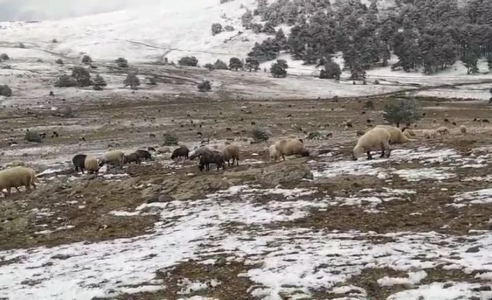 Tokat’ta kar yağışına yaylada yakalanan çoban Serhan Çakmak, koyunlarına türkü söyleyerek duygusal anlar yaşattı.