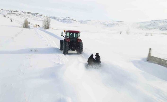 Sivas’ta yoğun kar yağışını eğlenceye dönüştüren bir vatandaş, traktöre bağladığı lastikle köy sokaklarında kayarak gezdi. O anlar aksiyon kamerası ve dron ile kaydedilirken, ortaya renkli görüntüler çıktı.
