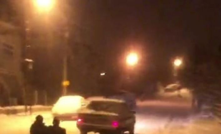 Kar keyfini yaşayan bir bazı vatandaşlar ise otomobile bağladıkları iple cadde de kayak yaptı. O anların cep telefonuna yansıdığı anlarda vatandaşlar kestikleri bidonlardan yaptıkları kızakla tehlikeye aldırış etmeden kayak yaptı.