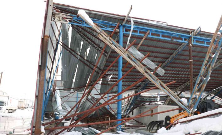 Kahramanmaraş’ta inşaat aşamasında olan geri dönüşüm fabrikasının çatısı yağan kara dayanamayarak çöktü.