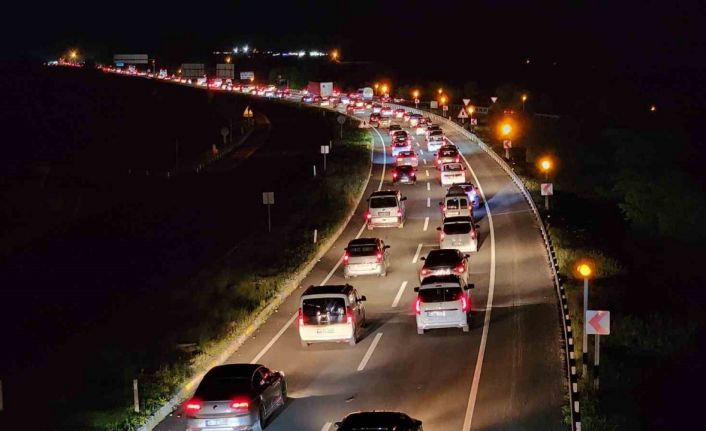 Kurban Bayramı tatilinin sona ermesiyle birlikte tatilciler, evlerine dönüş yolundaki yoğunluğu sürüyor. İstanbul’un Karadeniz’e bağlantısının sağlandığı Karabük’ün Eskipazar ilçesinde yer alan Kemikli Rampaları’nda trafik durma noktasına geldi. Karabük - Gerede karayolundaki geçitte özellikle Karadeniz’de dönen tatilcilerin karayolundaki yoğunluğu trafiğinde yavaşlamasına neden oldu. Sabah saatlerinden itibaren devam eden yoğunluk gece boyunca trafikteki yoğunluğu sürüyor. Saatlerdir yollarda olan sürücüler özellikle Çerkeş’ten Gerede gişelerine kadar yaklaşık 70 kilometrelik araç kuyruğu oluşturuyor. Yoğun trafikten dolayı bazı araçlar hararet yaparak arızalandı.