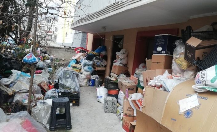 Karabük’te komşuların ihbarı üzerine kötü kokuların geldiği bir evden 2 kamyon çöp çıkarıldı.