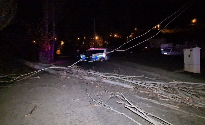 Karabük’te akşam saatlerinden itibaren etkisini sürdüren fırtınada bazı ağaçlar devrilirken, elektrik telleri koptu.
