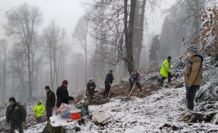 Karabük’te kar yağışına rağmen 5.5 ton kayın tohumu toprakla buluşturuldu
