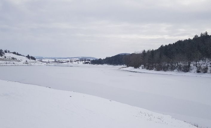 Kar yağışının ardından sıfırın altında-24 dereceyi gören Karabük’ün Eflani ilçesinde göletler buz tuttu.