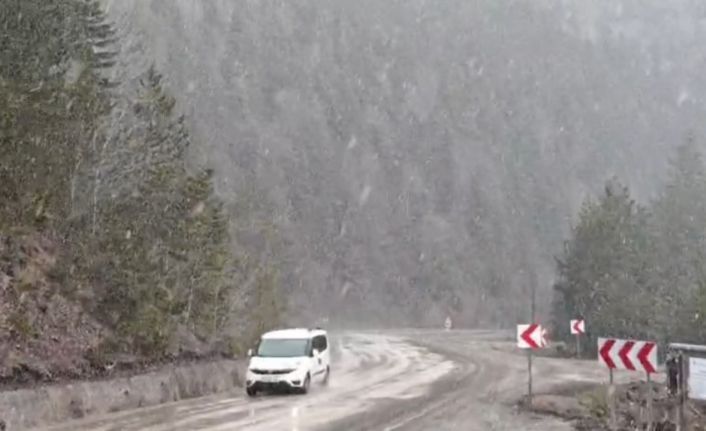 Hava sıcaklıklarının düştüğü Karabük’ün yüksek kesimlerinde kar yağışı yeniden başladı. Karabük-Bartın kara yolunun 1030 rakımlı Ahmetusta mevkisinde başlayan kar yağışı, bölgede kısa sürede etkisini gösterdi. Güzergahı kullanan vatandaşlar, o anları cep telefonu kamerasıyla kayda aldı.