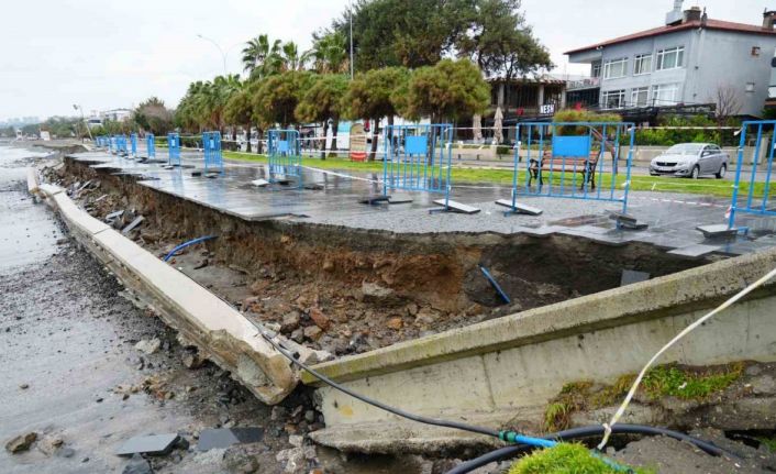Samsun’da etkili olan şiddetli fırtına nedeniyle Karadeniz’de oluşan 2-3 metrelik dev dalgalar, Atakum sahilinde yürüyüş yollarına ve tesislere zarar verdi.