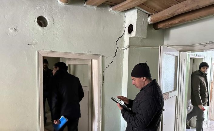 Kahramanmaraş merkezli meydana gelen 7.7 ve 7.6 büyüklüklerindeki depremin ardından Elazığ’ın Karakoçan ilçesinde hasarlı binaların kontrolü sürüyor.