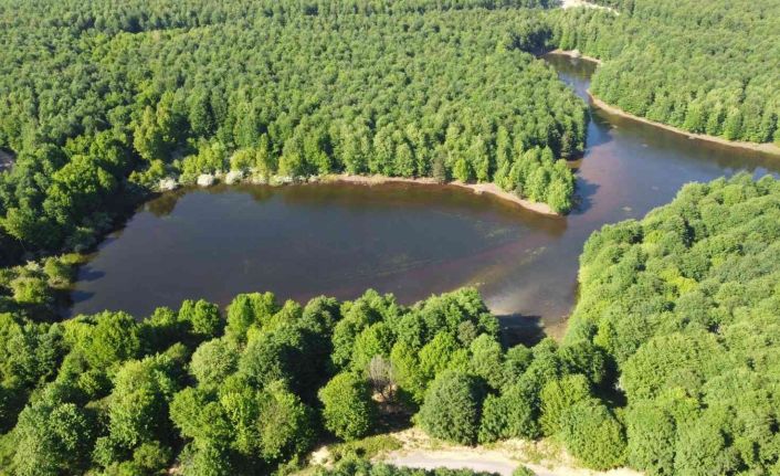 Yalova’nın Çınarcık ilçesinde bulunan Karlık Yaylası’nda kar sularından oluşan gölet ve orman manzarası görsel şölen sunuyor.
