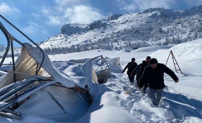 Karaman’ın Narlıdere köyünde yağan karın ağırlığına dayanamayan seralar çökerek yerle bir oldu.