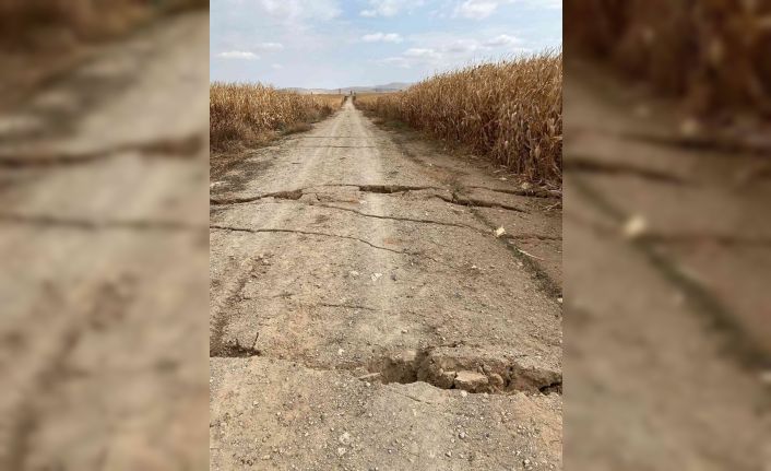 Karaman’da tarla yolunda oluşan yüzey yarıkları köylüleri korkuttu.