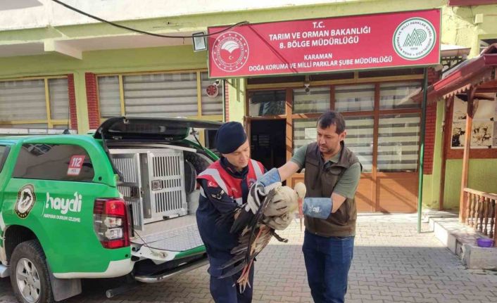 Karaman’da jandarma tarafından yaralı halde bulunan leylek, Doğa Koruma ve Milli Parklar Şube Müdürlüğüne teslim edilerek koruma altına alındı.