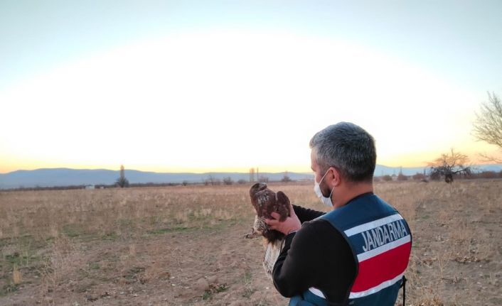Karaman’da jandarma ekiplerince yol kenarında yaralı vaziyette bulunan kızıl şahin koruma altına alındı.
