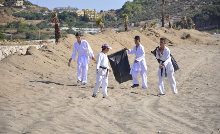 Sporculardan Berkan Çelik de, “Sahilin çok kirli olduğunu gördük ve hocamızla birlikte böyle bir etkinlik düzenledik, poşetler dolusu çöp topladık. Karatenin 4 yumruk 5 tekmeden ibaret olmadığını göstermek istedik. Örnek olduysak ne mutlu bize” şeklinde konuştu.