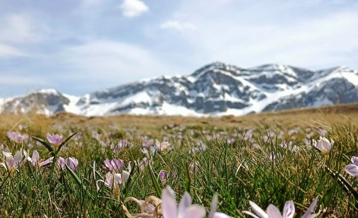 Bitlis’in Tatvan ilçesi sınırları içinde bulunan Nemrut Dağı’nda açan kardelen çiçeklerinin karlı dağlarla buluşması adeta görsel şölen sunuyor.